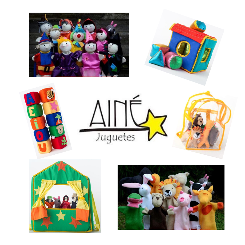 Increíbles juguetes artesanales de tela marca Ainé. Teatros, títeres y cubos didácticos.