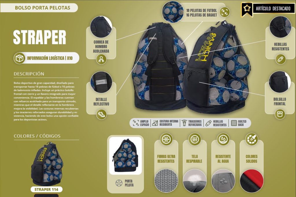 BOLSON MOCHILA PORTA PELOTAS MUNICH STRAPER GRANDE