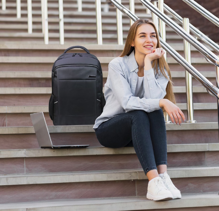 espacio adicional y flexibilidad. El espaldar AIR FLOW garantiza una distribución eficiente de la carga y ventilación adecuada. Un práctico soporte en espaldar permite acoplarla a la manija de una maleta (CARRY ON).