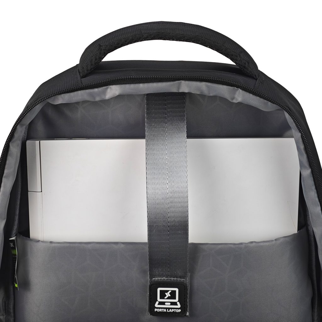 Las hombreras y el asa superior, acolchadas con malla esponjada, aseguran un transporte cómodo. Además, presenta detalles reflectantes, costuras internas recubiertas y tiracierres reforzados para mayor durabilidad y seguridad.