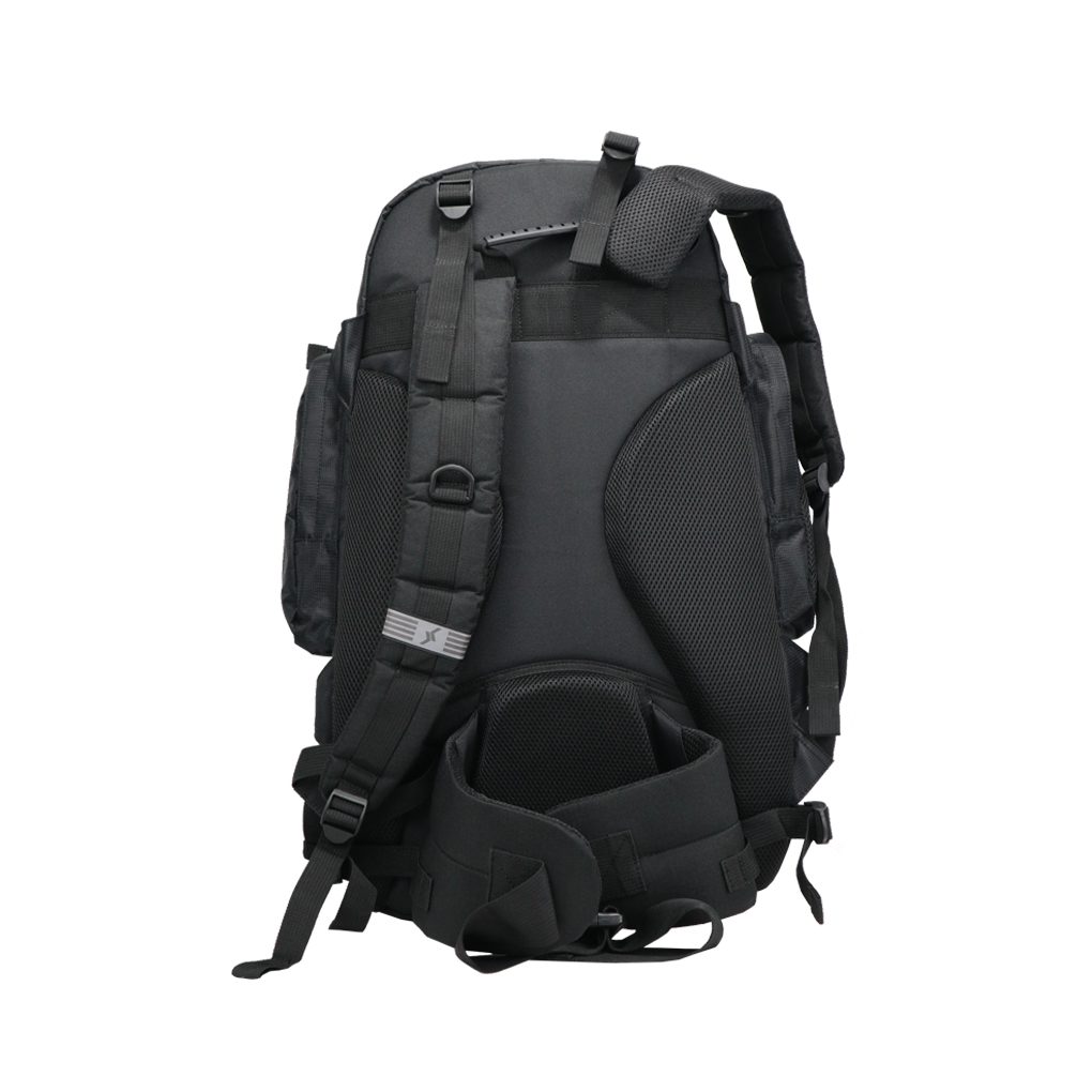 • Dos bolsillos frontales, uno superior con cierre y otro hacia la base con cierre de doble cursor con funda para transportar ropa usada en la base de la mochila.