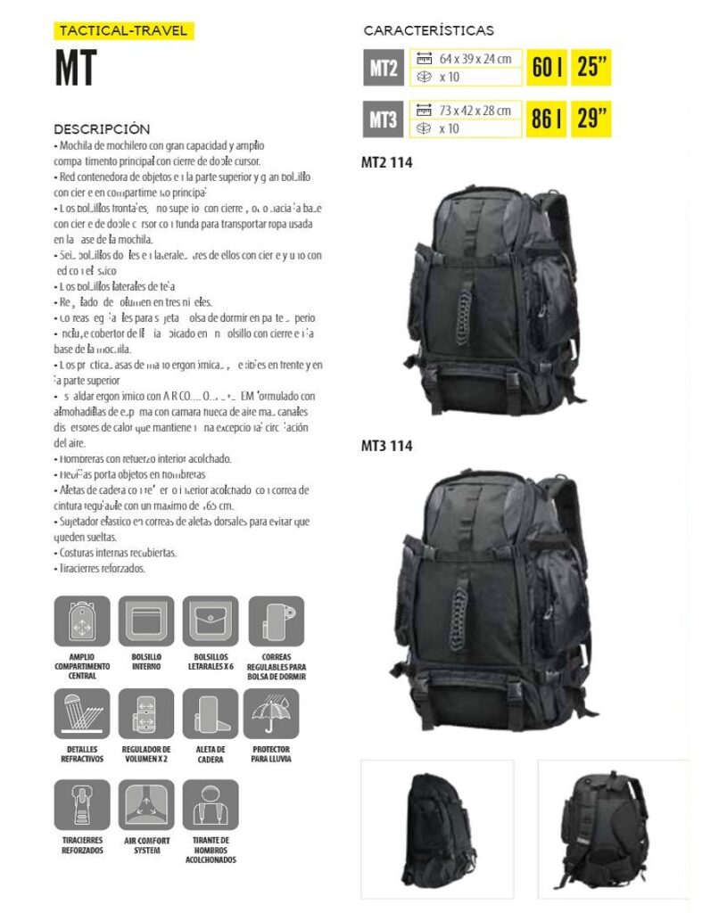 • Mochila de mochilero con gran capacidad y amplio compartimento principal con cierre de doble cursor.