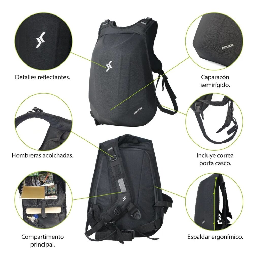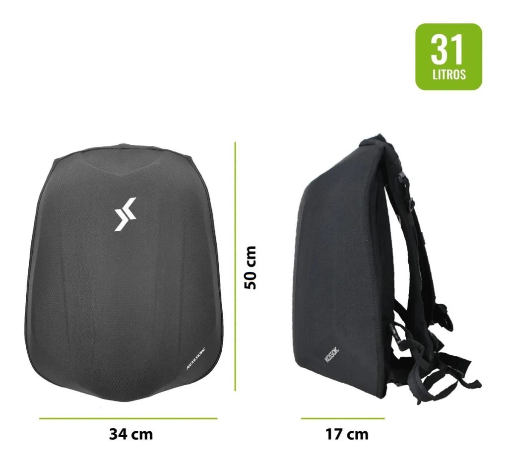 Mochila Moto Kossok Impermeable Rígida Correa Porta Casco