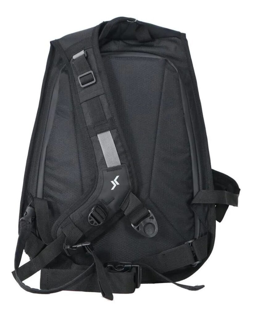 • Hombreras tipo paracaídas, ergonómicas, completamente ajustables y acolchonadas, para aumentar el confort durante la conducción y evitar que los los objetos que se lleven dentro rayen el casco.
