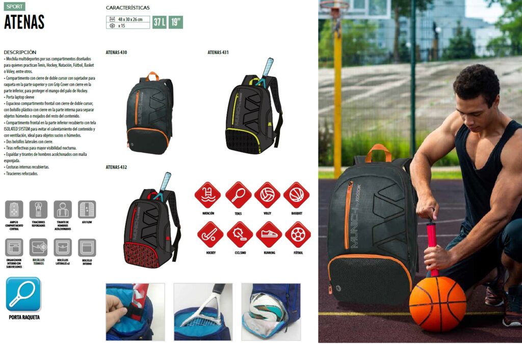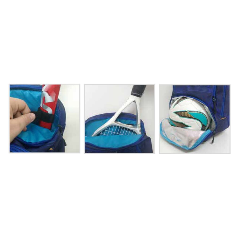 • Mochila multideportes por sus compartimentos diseñados para quienes practican Tenis, Hockey, Natación, Fútbol, Básquet o Vóley, entre otros.
