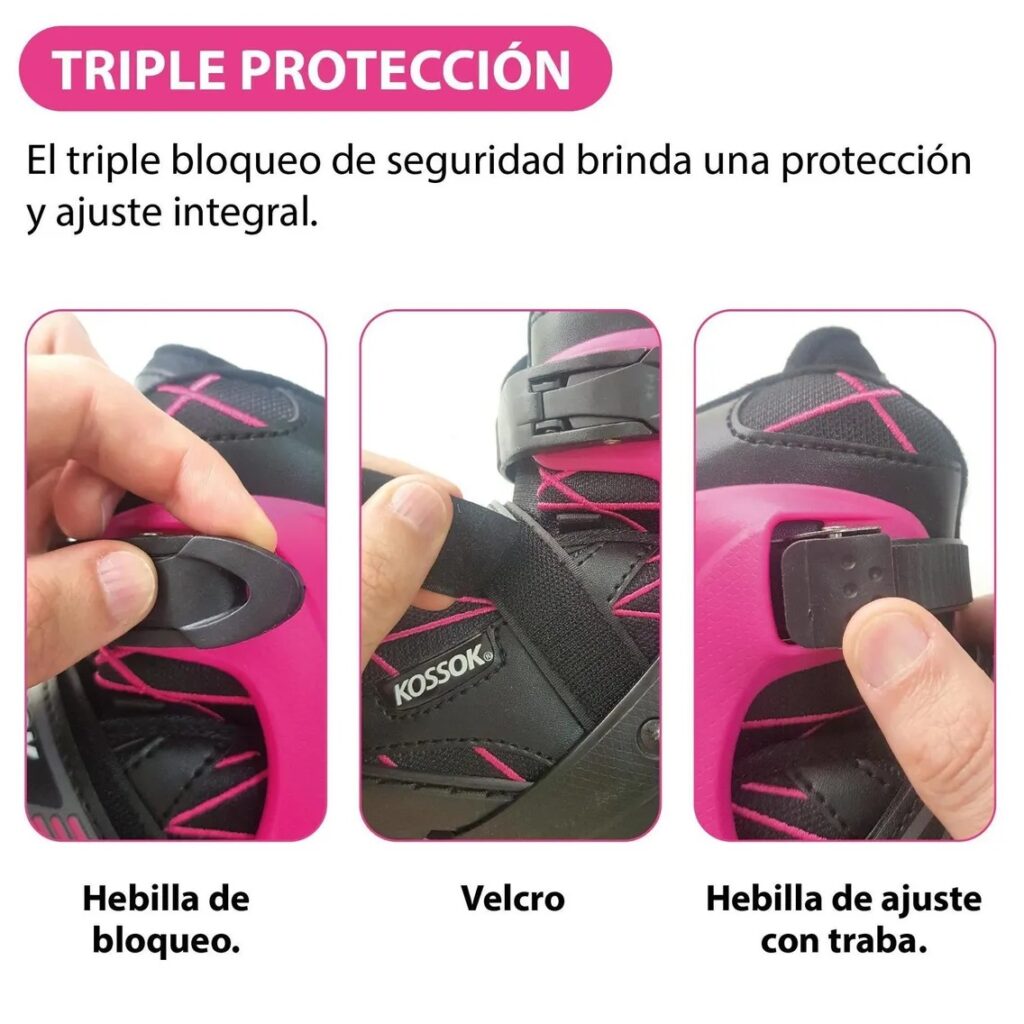 El roller RUSH está equipado con chasis de aluminio lo que le proporciona rigidez y mayor durabilidad además de que le confiere más precisión. Con ruedas que varían en diámetro de acuerdo al talle y dotados de rodamientos de alta calidad, estos rollers son la opción perfecta para tu actividad en tiempo libre. Tiene una bota rígida acolchada que proporciona una correcta sujeción del pie para evitar que los tobillos se doblen y mantener un buen equilibrio mientras se patina. La bota es extensible y por medio de un botón es posible ajustarla a distintos talles de calzado.