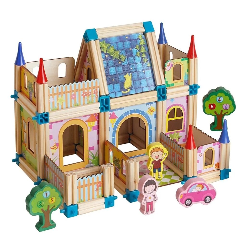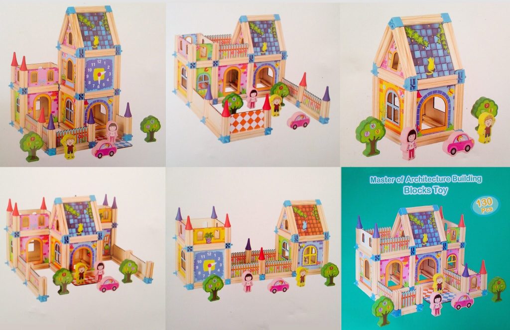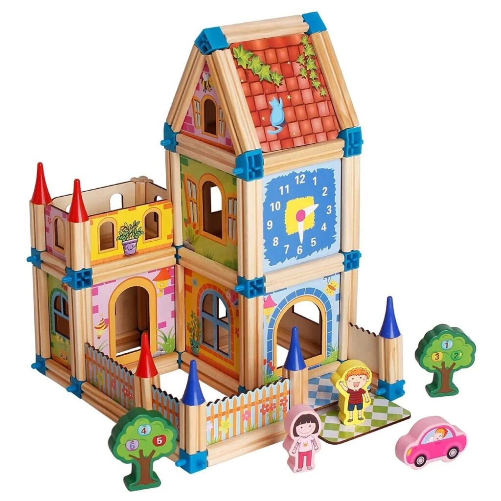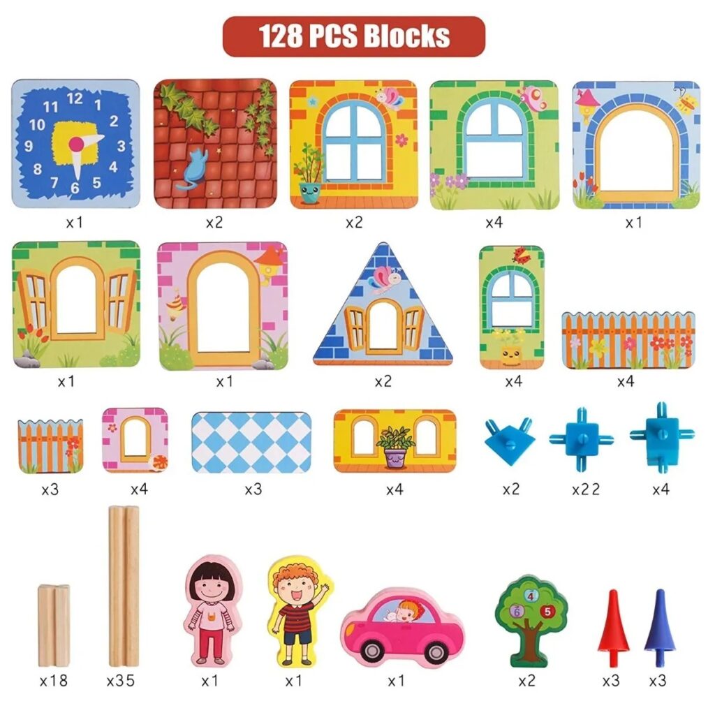 SET DE ARQUITECTURA CON BLOQUES DE MADERA DE 128 PCS